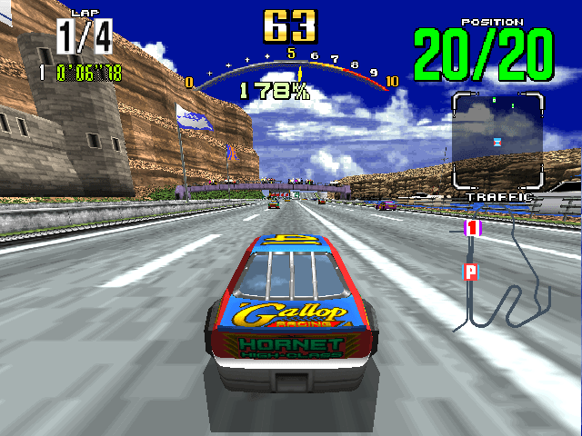 There was also a Saturn version, released in 1996 in Europe. Like other third-party ports it suffers from a poorer framerate compared to the PlayStation version. Still the game is playable and defiantly worth checking out if you’re interested in Saturn racing games. The Mednafen emulator is used for the screenshots below.